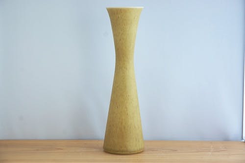 花瓶としては背丈が高めで縦にスッと伸びる佇まいが美しく、存在感が大きいので、何も活けずにそのままオブジェとして飾っても見栄えがすると思います。もちろん、優しい色合いの花瓶ですので一輪二輪くらいのお花をさり気なく活けてあげても素敵だと思います。