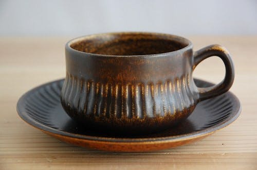 スウェーデン、ゲフル釜のKOSMOSシリーズのカップ&ソーサー(ブラウン)です。こちらはマットな釉薬が施されているタイプのものとなります。