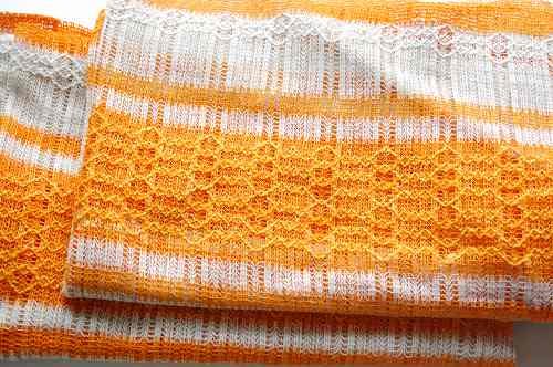 糸と糸の間から差し込む光が、更に布のオレンジ色を輝かせて見せてくれます。部屋全体の印象がカーテンひとつで、ガラリと変わるのではないかと思いますよ!