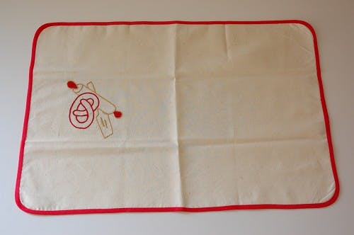 白地の布を縁取る赤いラインが良いアクセントになっています。