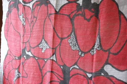 布地いっぱいに広がる赤い花模様が印象的なお品です。