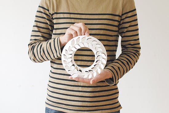 こちらは、1枚の紙を折って作るクラフトリースで、インテリアプロダクトのデザイン・商品開発などで活躍される伊藤千織さんが手掛けたデザインです。