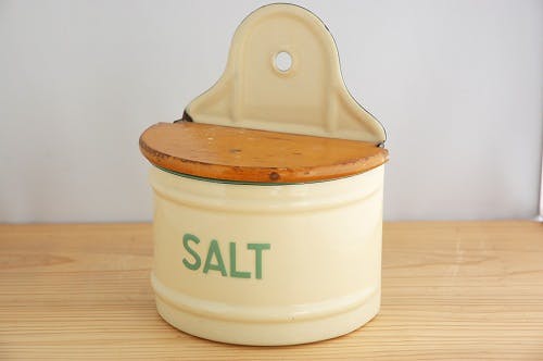 壁に掛けて使用できるタイプのキッチンウェアです。本来の目的はソルトポットですが、キッチン周りで使う小物を収納するのに使ったり、キッチンだけでなく他の場所でも壁に掛けたり置いたりして使い道を楽しんでいただけると思います。