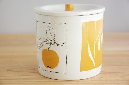 Upsala Ekeby/ウプサラ・エクビイの、からし色のペイントがとても魅力的な陶器のキャニスターです。