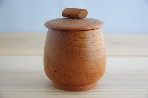 スウェーデンで見つけた、木製マスタードポットです。