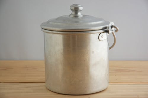 フィンランドで見つけたアルミ製のキャニスター(持ち手つき)です。