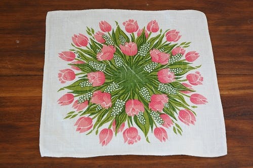 白地に咲くチューリップの花模様は、気分を華やかにしてくれます。