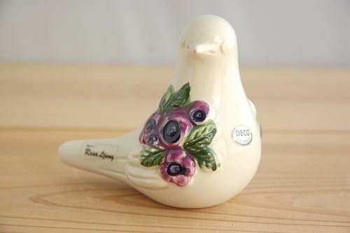 北欧は本当に鳥をモチーフにしたデザインが多いですが、こちらは特に乙女心をくすぐられるテイストのオブジェですね。胸にあしらわれた花模様がとても愛らしいです。