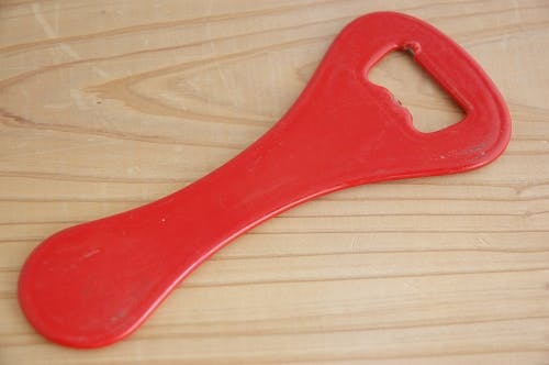 フィンランドで見つけたキッチンツール、鉄製の赤い栓抜きです。
