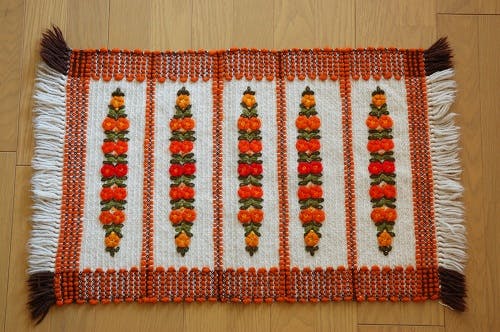 リズムよく並んだオレンジ色の花模様が、さらに温かな雰囲気を醸し出してくれています。