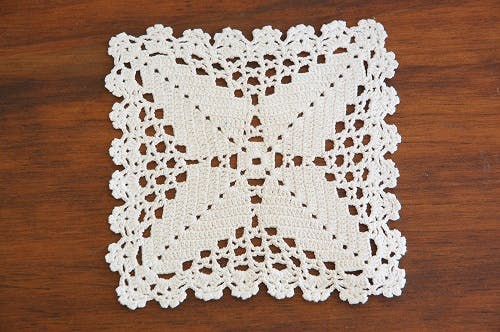 スウェーデンで見つけたスクエア型の手編みドイリー(ホワイト)です。