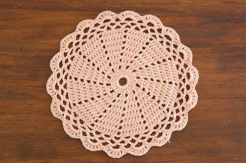 スウェーデンで見つけた手編みドイリー(ピンク)です。