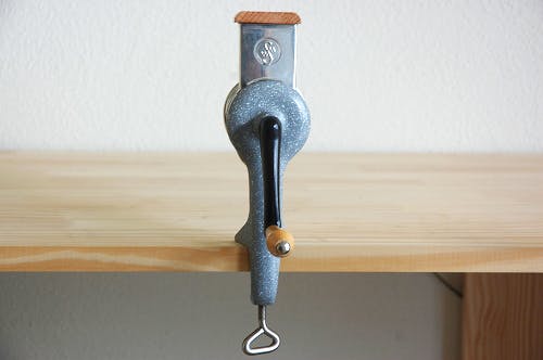 スウェーデンではクッキーなどのお菓子を作る時に細かく砕いたアーモンドをよく使用します。蓋を外してその中に丸ごとのアーモンドを入れ、くるくるとハンドルを回すと、砕けて細かくなったアーモンドが出てくるという仕組み。