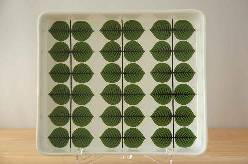 お皿の四角い形状と規則的に並ぶ葉っぱ模様が非常にマッチしていて、一枚の壁掛け(絵)のような魅力に溢れています。