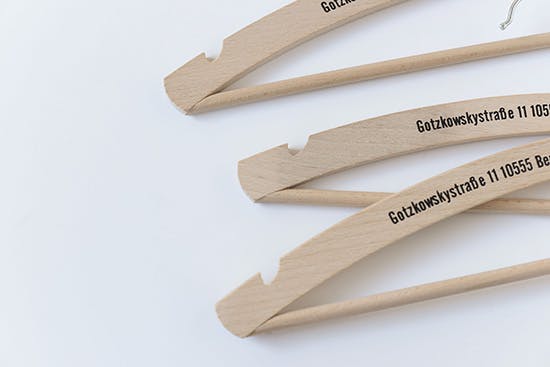 かつて、海外のクリーニング屋さんでは、木製のハンガーに店名や住所、電話番号などを広告代わりに刻印していたのだそうです。
