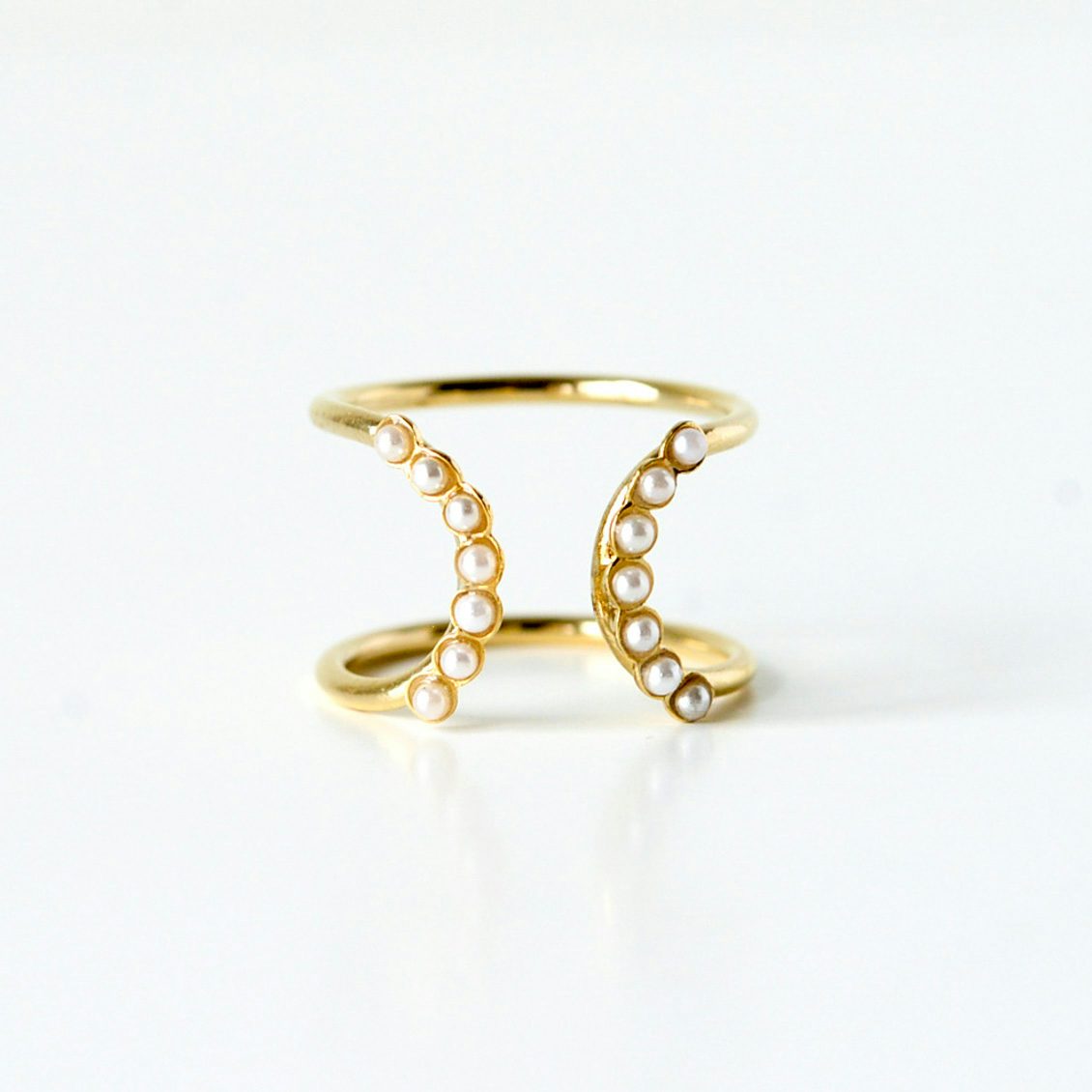 柔らかな弧を描くようにあしらったパールのリングは、華奢なのに一つできまる存在感のあるデザイン。