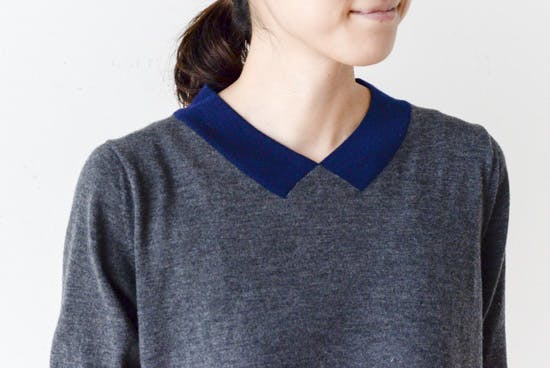 こちらは首元に襟のデザインがされた、グレー×ネイビーのウールのプルオーバーです。