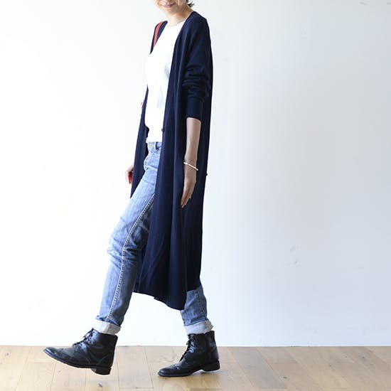 ベーシックでどんな服装にも合わせやすく、今っぽい気分を楽しめるロングカーディガン。