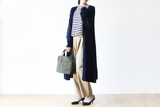 (モデル身長:158cm、トップス:Le minor、ボトムス:LIGNE DE MIGNON、バッグ:marimekko)