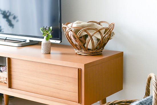 無機質になりがちな家電まわりを、アラログのナチュラルな風合いが、お部屋をやさしい印象にしてくれます。