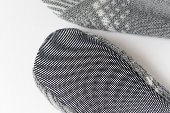 内側もウール混の糸で編んでいるので、素足で履いても気持ちよく過ごせます。