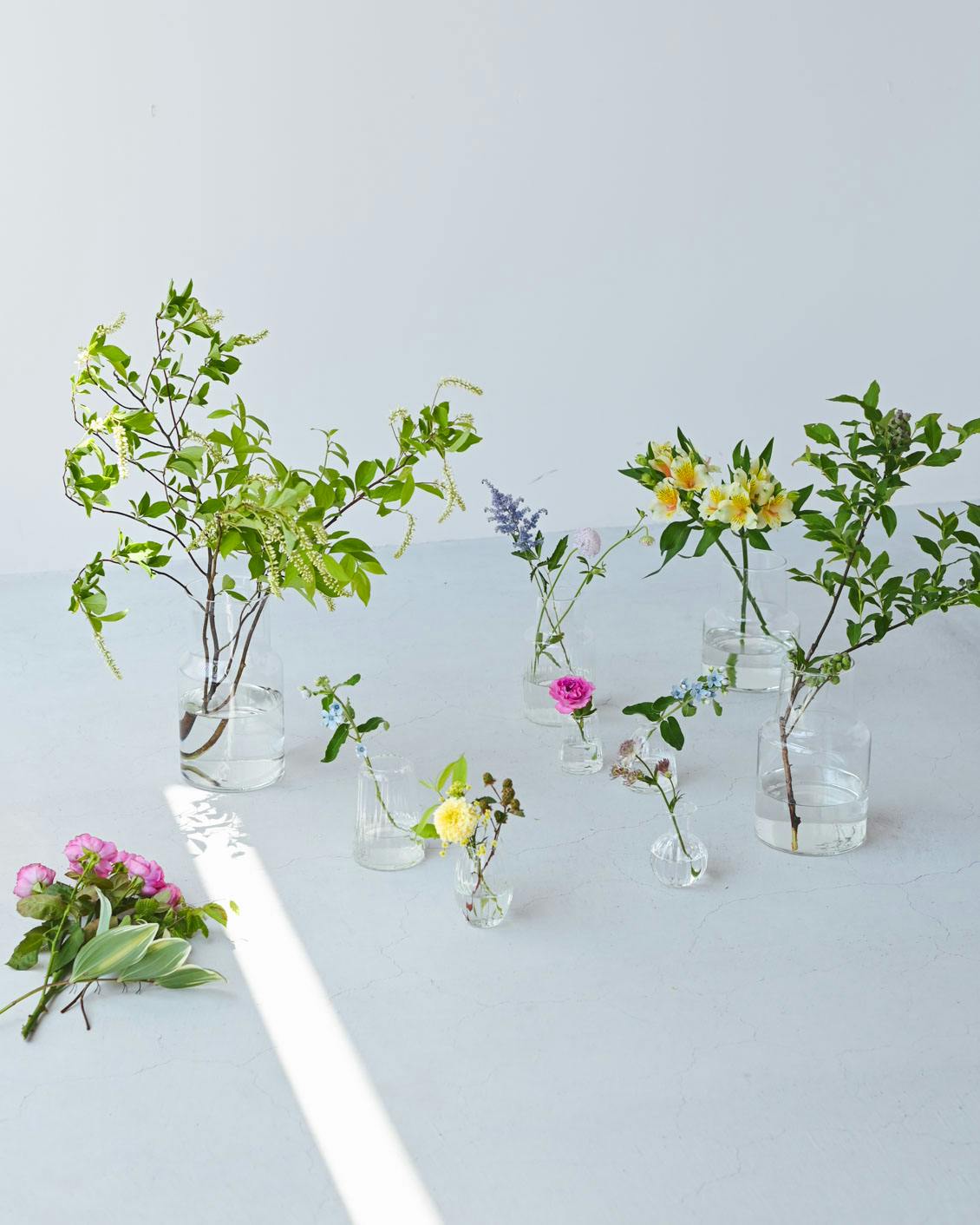 花の可憐さが際立つスモールサイズから、使い勝手の良いミディアムサイズ、ボリュームと高さのある花や枝物まで楽しめるラージサイズをご用意しました。