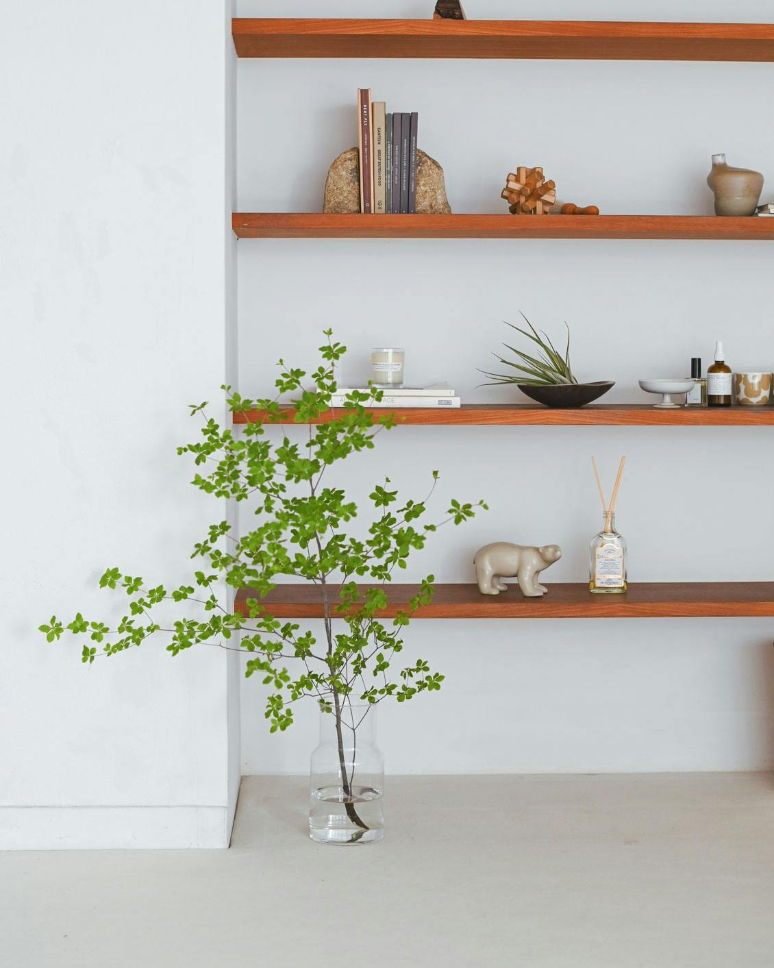 春はミモザ、夏はドウダンツツジ、秋はユーカリ、冬はコットンフラワーなど、季節を感じる枝ものを飾るのにおすすめ。