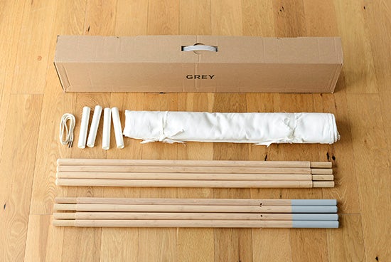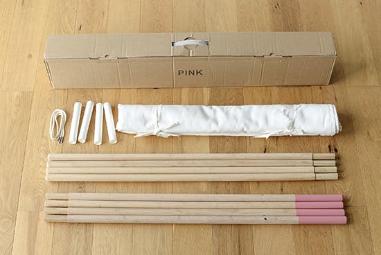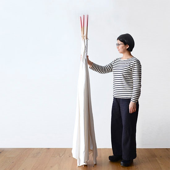 組み立てといっても、木と布を繋ぐだけの簡単な作りなので、特別な道具を使わず、ひとりでも組み立てられます。