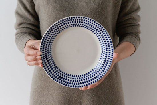 直径22.5cmのラウンドプレートは、パスタなどの一品料理や、一人分のおかずをのせるのにぴったりのサイズです。