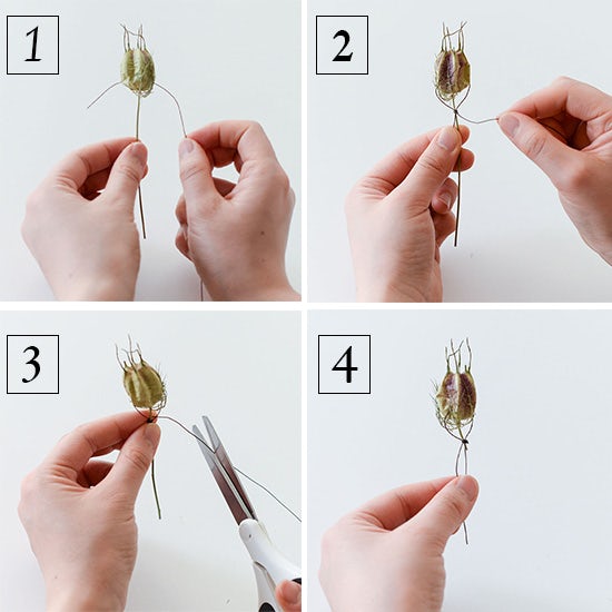 [2]そのワイヤーを茎に巻き付け、安定させる。