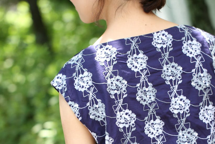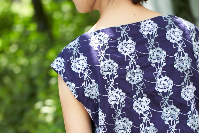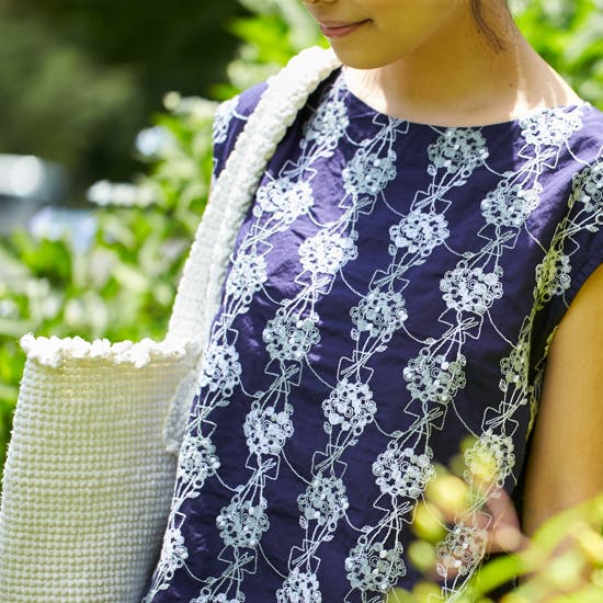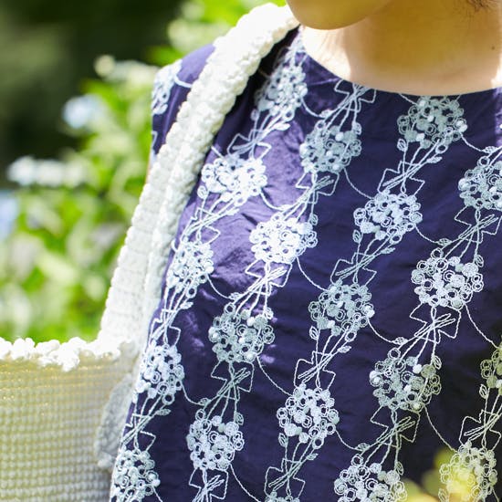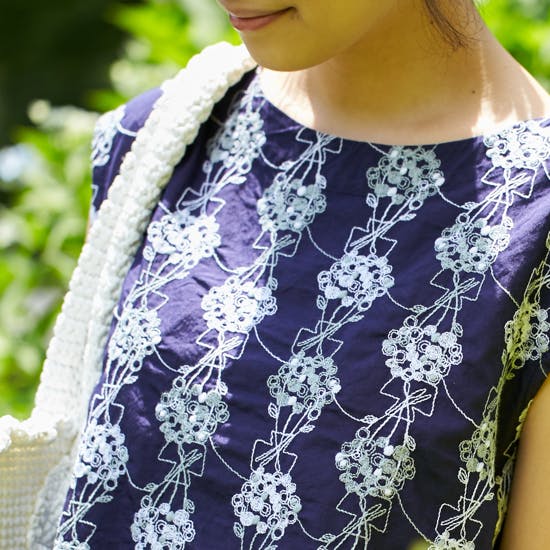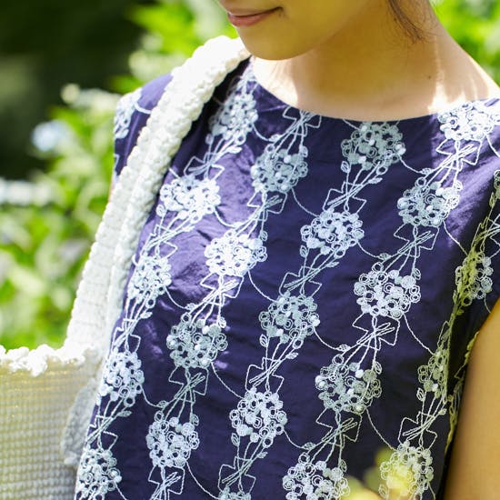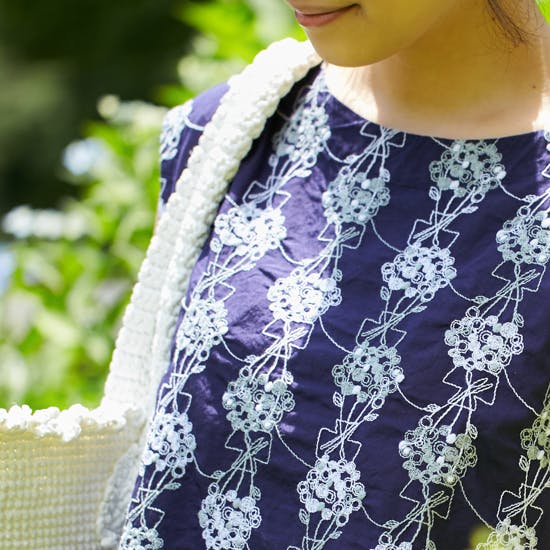 総刺繍ではありますが、生地や刺繍糸も全てコットン100パーセント。ハリのある質感は上品で、真夏でもさらりと涼しく過ごせる素材です。