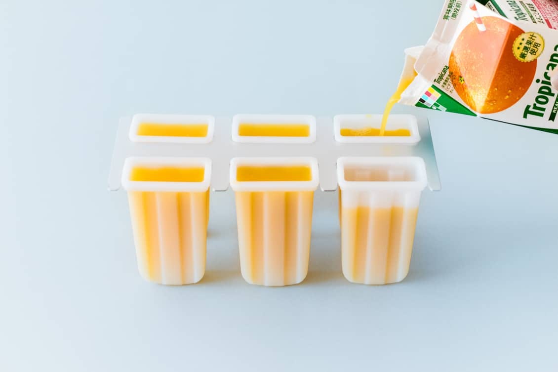作り方は、驚くほどシンプル。ベースとなるジュースを入れて凍らせるだけ!