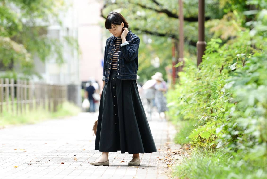 カジュアルなデニムジャケットやボーダートップスに合わせても、足元に甘さをプラスしてくれて、ちょうどいいバランスになりますよ。