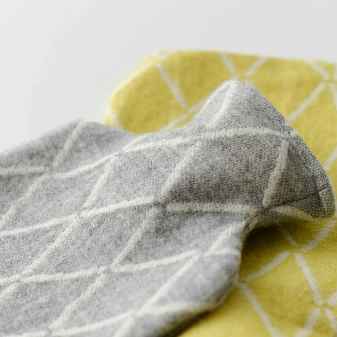 北欧柄(SEITA GREY・KIRIN): フェルト生地のような肌触りで、3種類の中では1番なめらかに感じられます。目が詰まっていて、あたたかな印象です。
