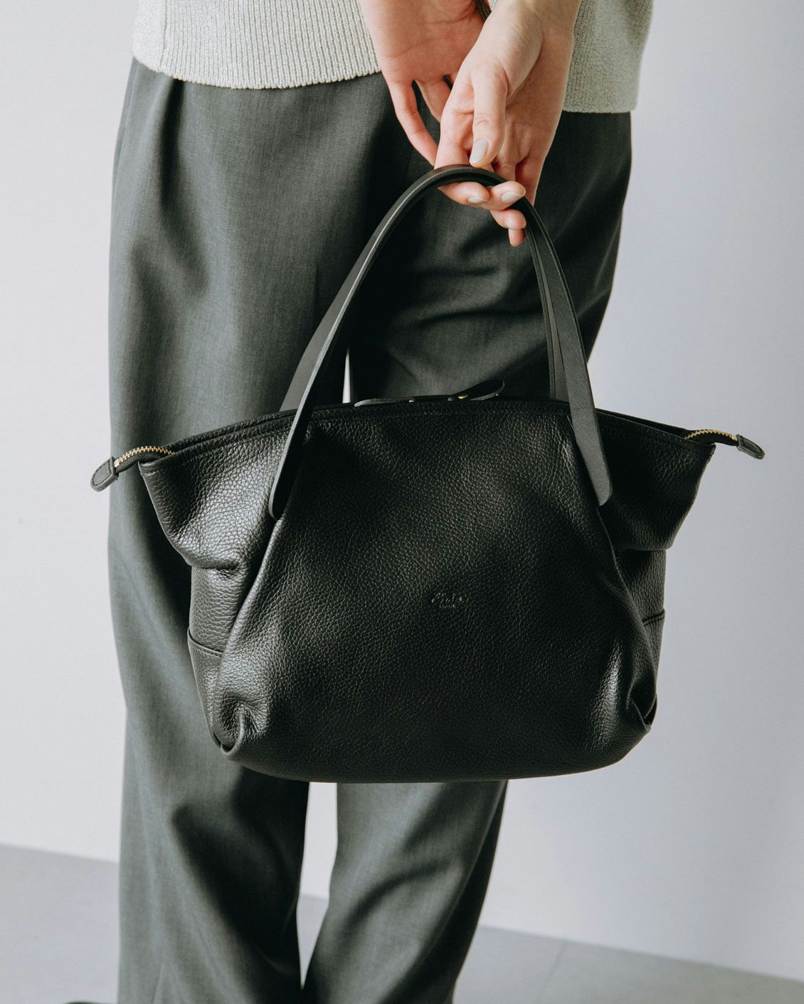 サイドがくびれていることで、実際よりコンパクトに見えるのも◎。オンでもオフでも使い勝手のいい、程よいサイズとデザインです。