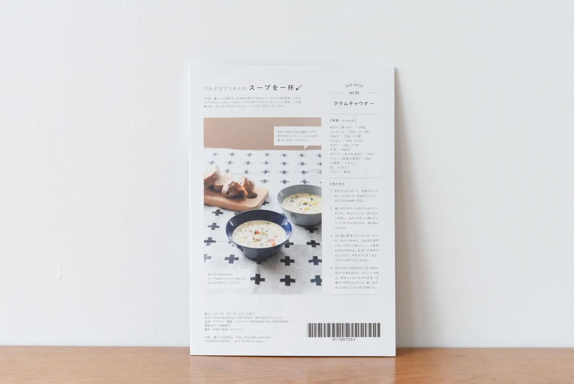 暮らしノオトでは毎号、フルタさんが作る旬の食材を使ったレシピを、料理をするときにも見やすいよう、裏面に掲載しています。