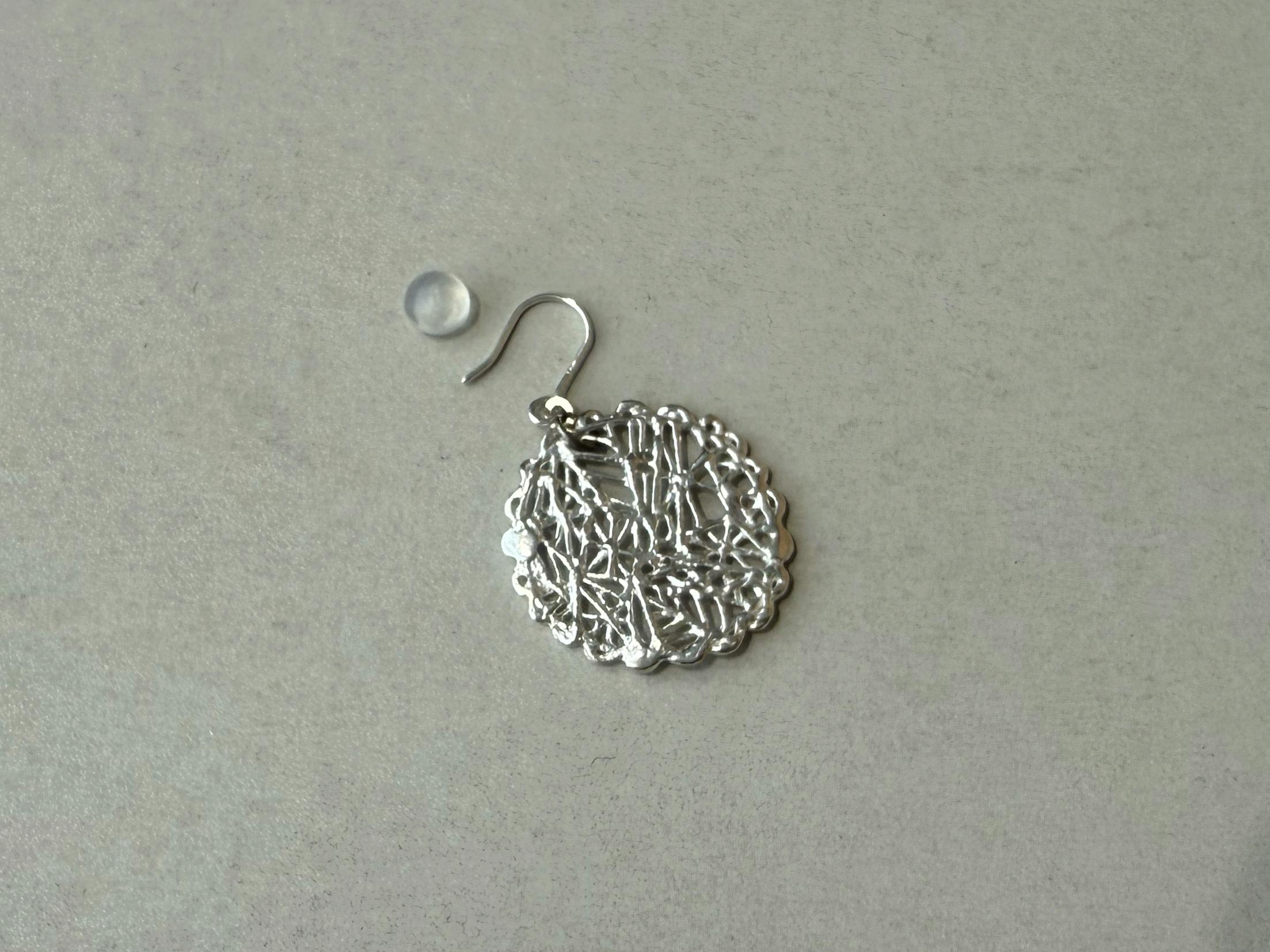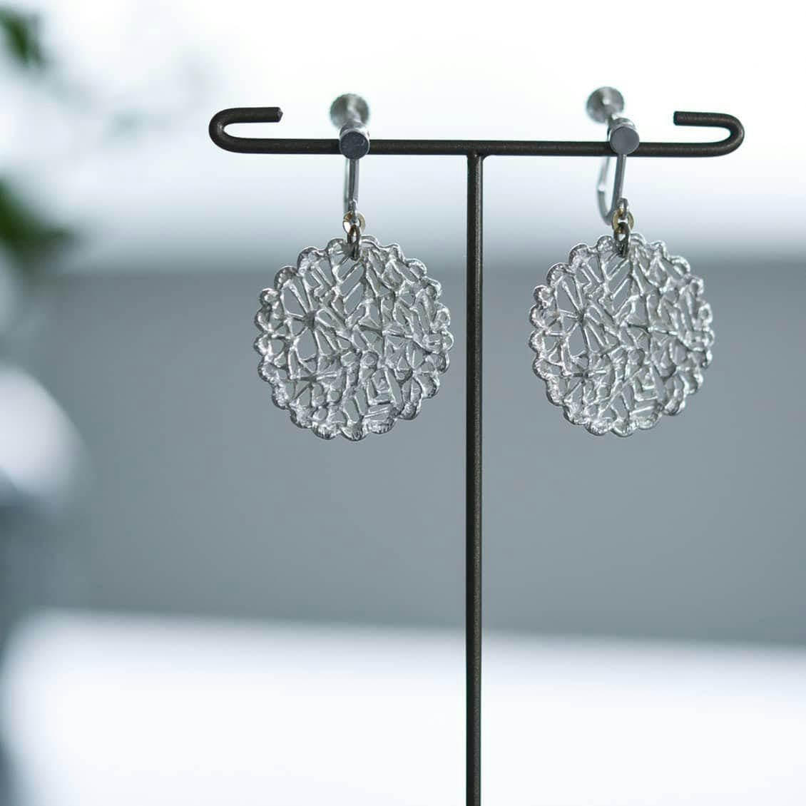イヤリングの留め具は、レースモチーフと同じ「スターリングシルバー925」をセレクト。スマートなデザインが印象的です。