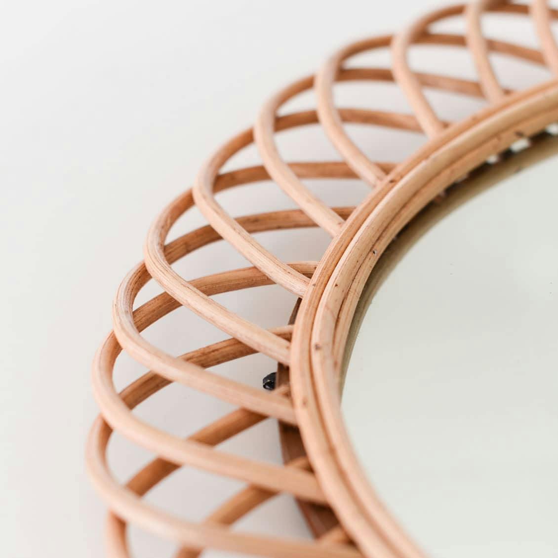 北欧家具をはじめ、かごや木工品などの温もりあるものが好き。雑貨を並べたり、ドライフラワーやかごを壁に掛けて飾ったりするのが好き。 そんなインテリアの好みに合うものが欲しくて、このラタンミラーにしました。