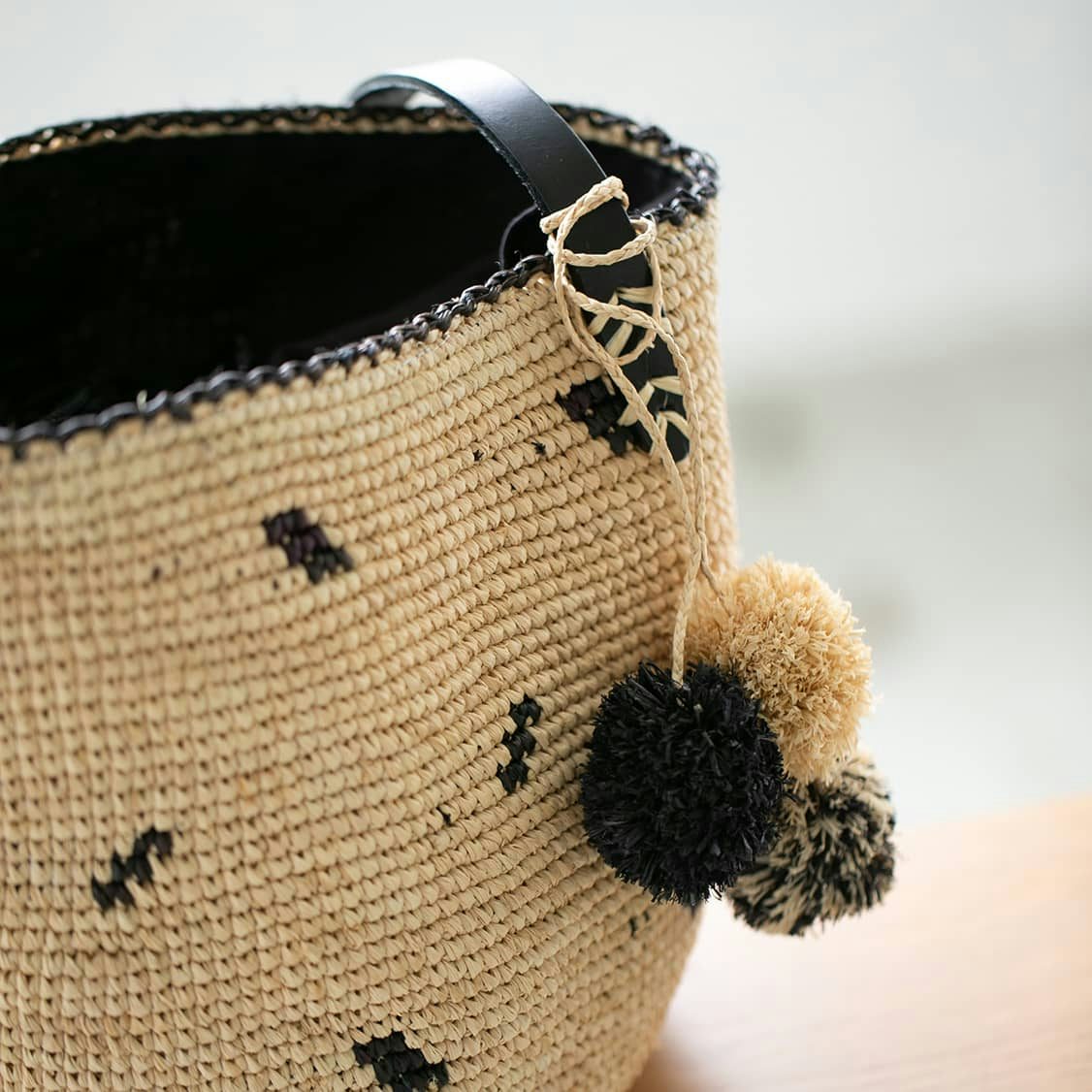 【取り扱い終了】M2/ラフィア素材の丸かごバッグ(ナチュラル×ブラック)