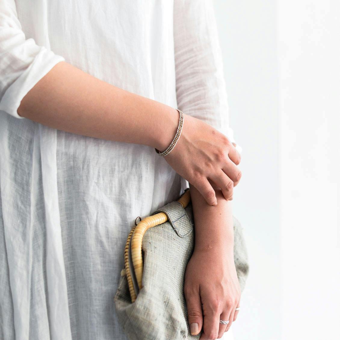 半袖の季節がやってくると、不思議と高まるのがアクセサリーをつけたいという気持ち。夏のシンプルな装いにも似合うものを……と探していたバイヤーが出合ったのが、このブレスレットです。