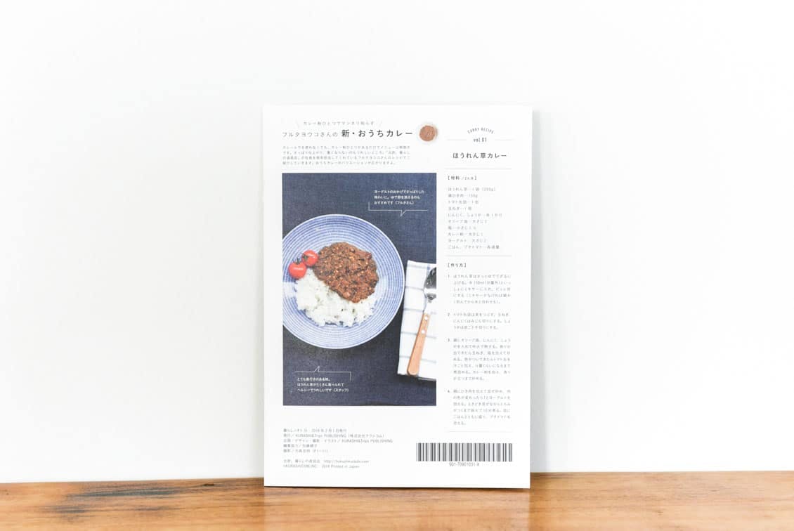 暮らしノオトの裏面には、料理家・フルタヨウコさんのレシピを掲載。テーマは「カレー粉でつくる、新・おうちカレー」。