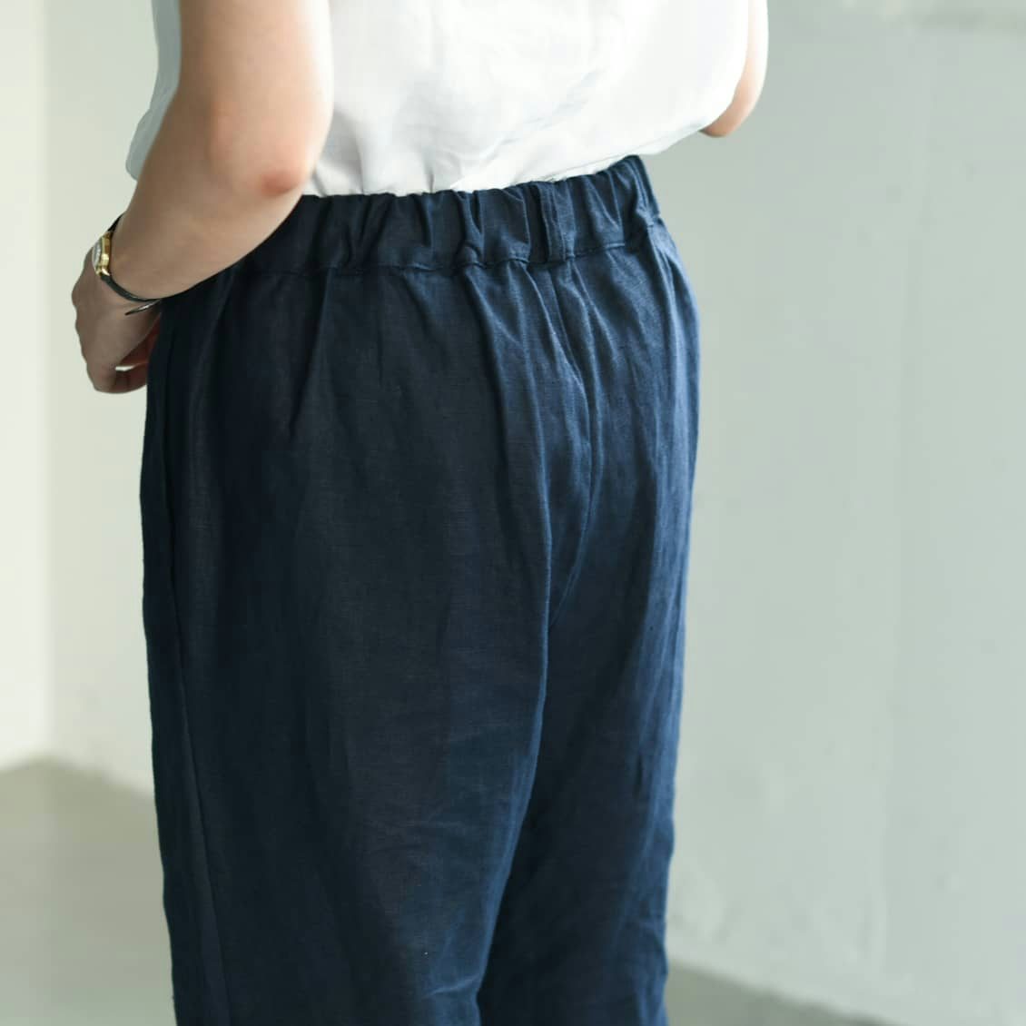 風通しのいいリネン素材のボトムス。夏場は涼しく、ワードローブにひとつあるだけで、おしゃれの幅が広がりそうです。