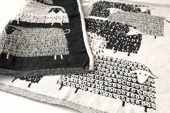 マリメッコなどのテキスタイルデザインを手がける鈴木マサルさんが描いた羊柄が愛らしいアイテム。