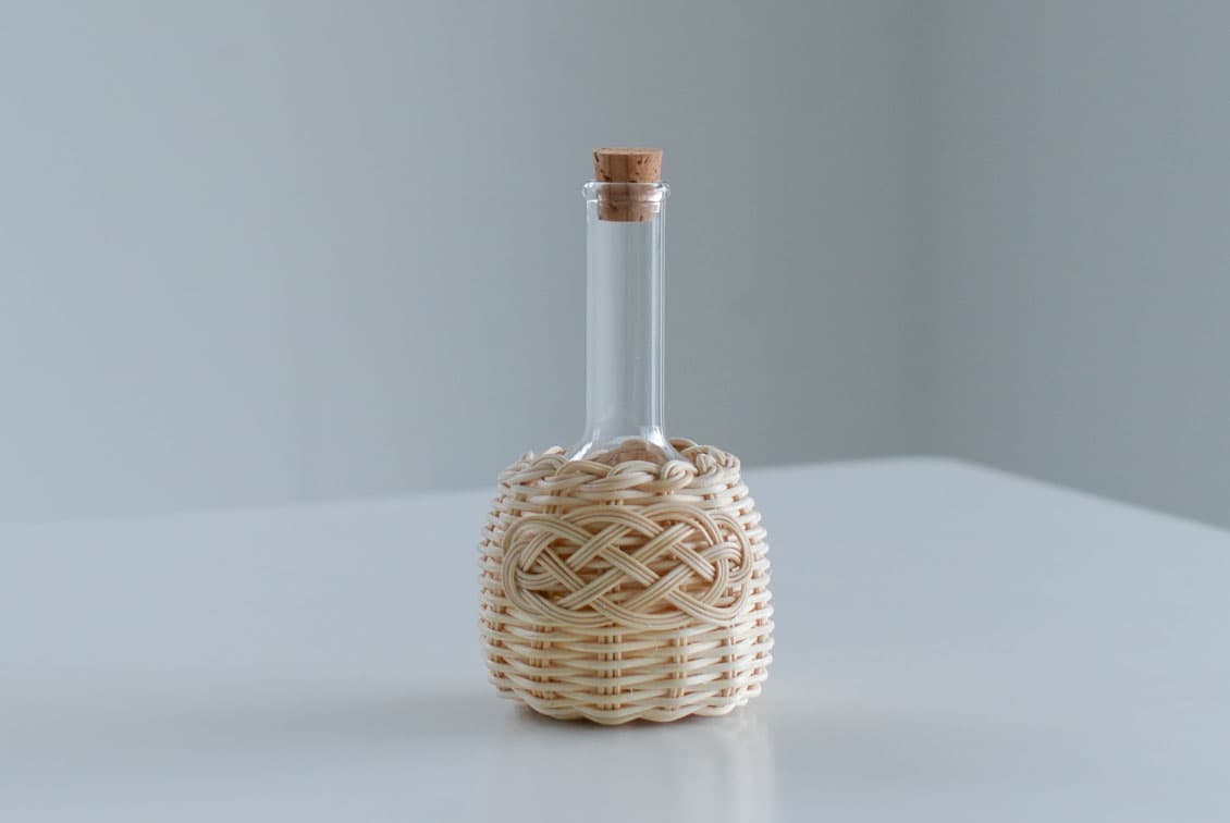 | 材質 | 装飾部分:ラタン(籐) フラスコ部分:ガラス 蓋部分:コルク |