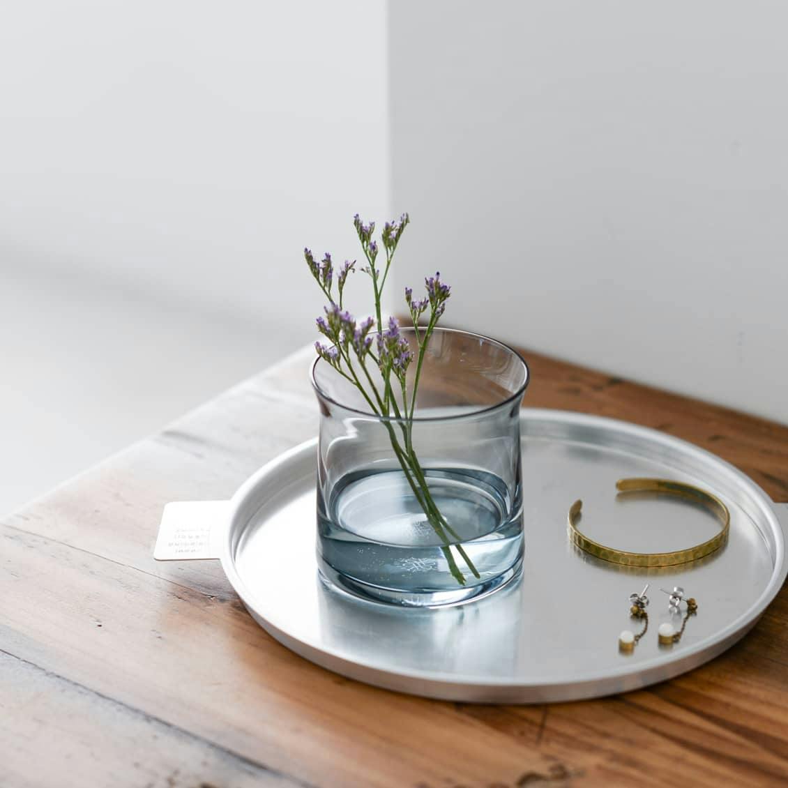 すっきりしてるデザインだから、飲み物以外にも暮らしのなかで活躍します。小柄なお花をいけてみると何気ない場所を彩ってくれますよ。