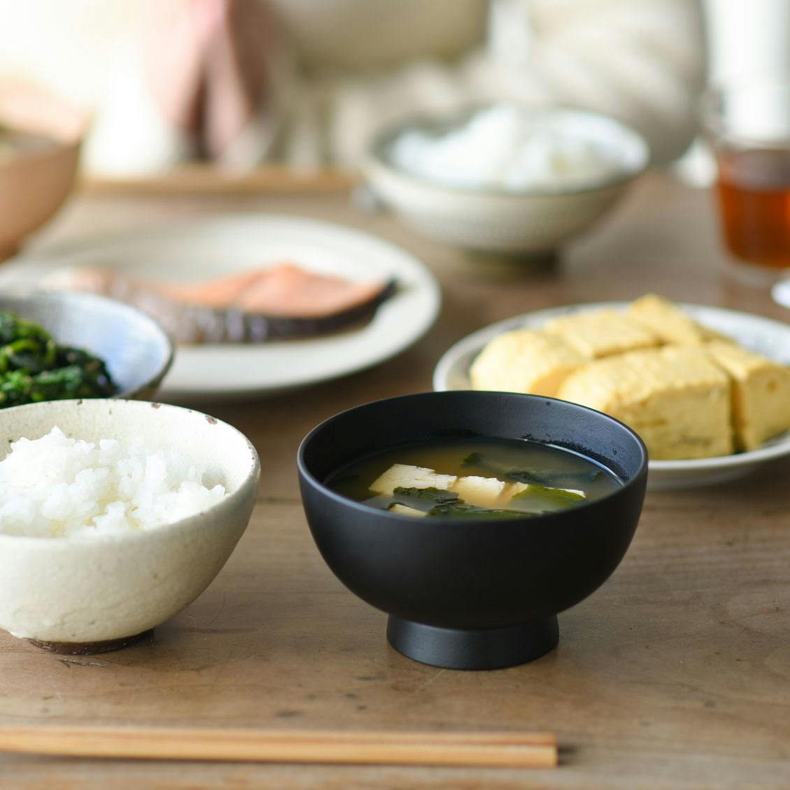 ツヤをおさえたナチュラルな見た目とぽってり丸いフォルムは、まるで木のボウルのよう。じつはお味噌汁だけじゃなく、シチューやポタージュとも意外と相性がいいんです。