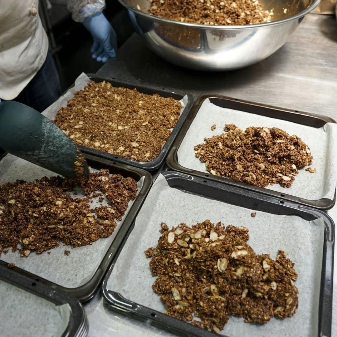 OYATSUYA SUNのグラノーラがおいしい理由のひとつは、小麦全粒粉を使い、ザクザクとした食感に仕上げていること。
