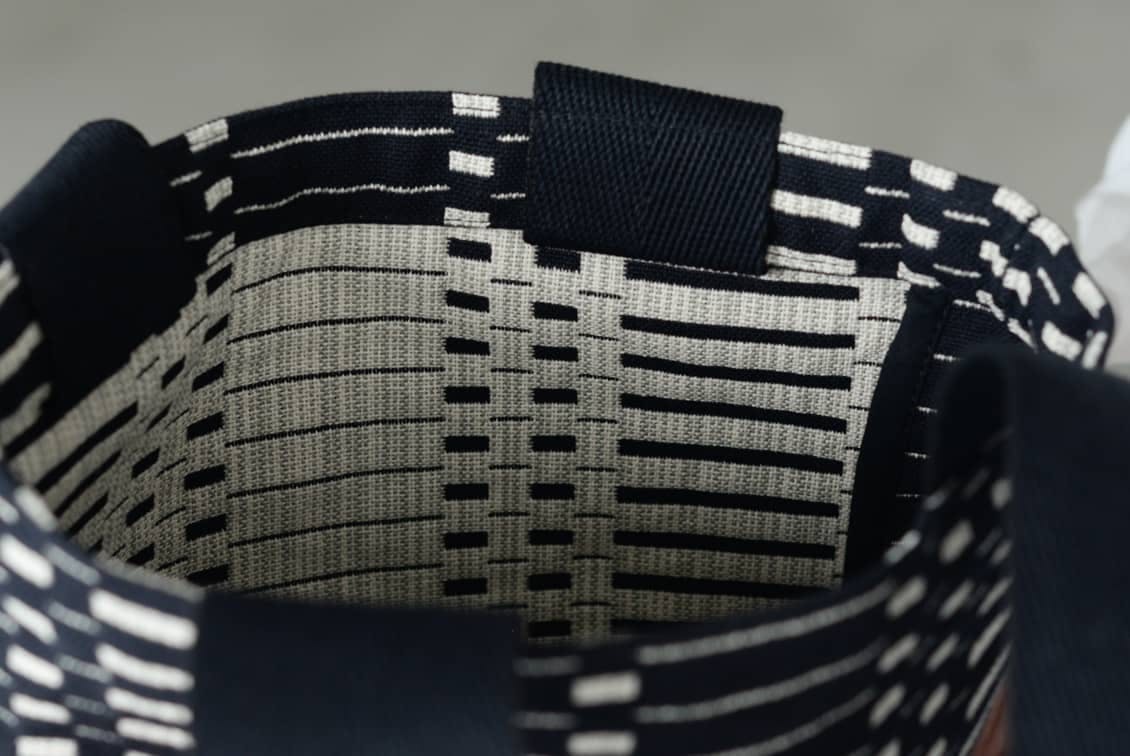 ブラックの生地には、ブラック、グレー、ホワイトの糸を使用し、プリントにはない、立体的な風合いに織り上げています。
