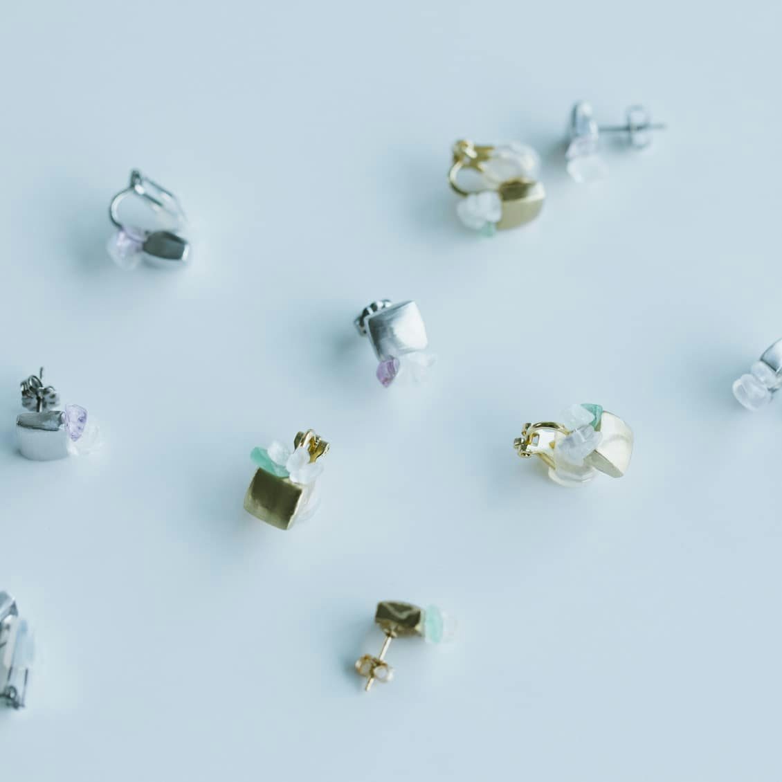 ふだんの装いにしっくりと馴染みつつ、凛とした雰囲気を添えてくれるピアスとイヤリングをお届けします。