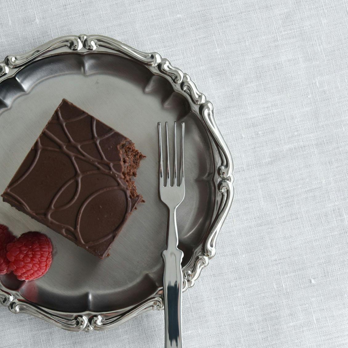 フォークは、ケーキなどのデザートフォークとして。先端に行くにつれ、外側に広がっていくデザインが特徴的です。